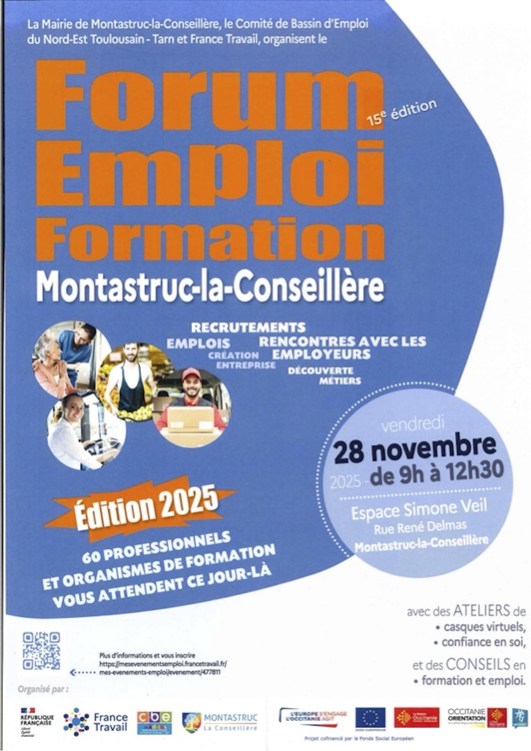 La Mairie de Montastruc-la-Conseillère, en partenariat avec le Comité de bassin d’emploi du Nord-Est Toulousain–Tarn et France Travail, organise son grand Forum de l’Emploi et de la Formation. Cet événement incontournable s’adresse à toutes les personnes en recherche d’emploi, en reconversion professionnelle, ou souhaitant s’informer sur les opportunités de formation disponibles dans la région.