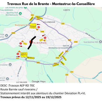 Afin de permettre la bonne réalisation de ces interventions, l’avenue de la Brante (RD 70C) sera fermée à la circulation, sauf pour les riverains et les services d’urgence, du mercredi 12novembre au vendredi 19 décembre 2025,sur le tronçon compris entre la rue Combe Belle et le passage sous la voie ferrée (vers la RD 70).